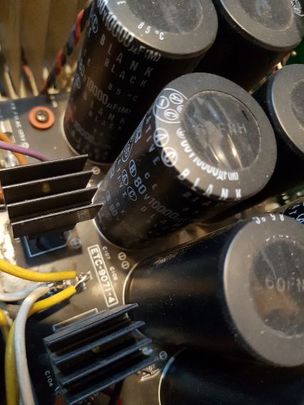 2SA1386A(PNP) and 2SC3519(NPN) jest do wymiany. Na szczęście udaje się je zdobyć w oryginale co gwarantuje zachowanie wszystkich parametrów końcówki i długofalową , bezawaryjną pracę. Sprawdzamy jeszcze pojemność kondensatorów zasilających, ale kondy Nippon Chemicon nawet po wielu lat użytkowania zazwyczaj trzymają parametry. Tak jest i tym razem.